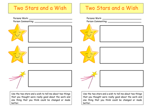 2 Stars And A Wish Template. Each sheet contains eight different labels each in a different colour to brighten up your feedback. For everyone whether you are going to start to join with others to consult a book this TWO. On one level it is a tool to gauge students level of involvement in the task and on a second level it provides feedback for improvement.