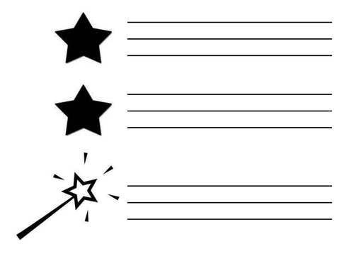 The Wish in the form of a star wand highlights an area that you wish to be a focus for the next les. For the 2 stars write something positive and for the wish something to be improved on. However there are many other elements to this strategy.