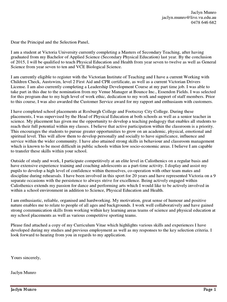 Cover Letter Examples For Physical Education Teachers