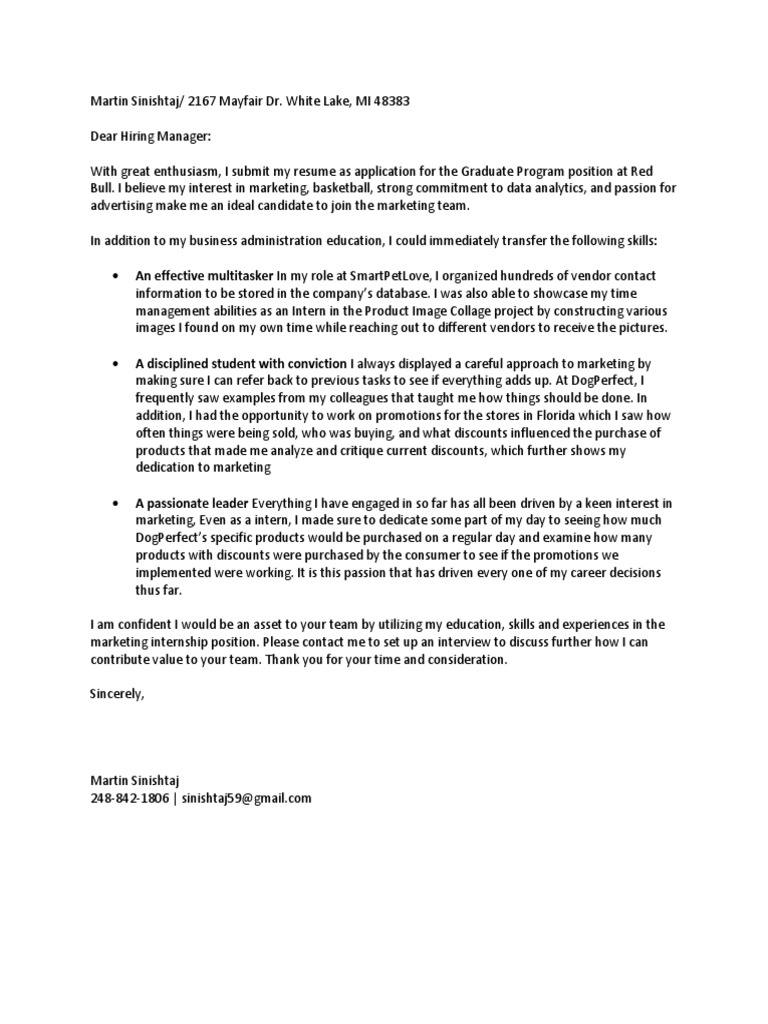 How to Write a Cover Letter. For the past 6 years Ive worked with one of the largest and fastest growing. Dedicated three years within Red Bull promoting products brand and consumer loyalty.