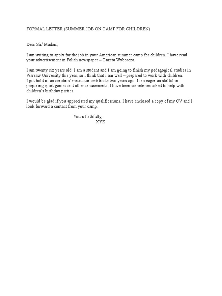 The hiring manager should have no doubt about your emotional intelligence and ability to relate to children when they reach the end of your cover letter. Customer Liaison Officer Cover Letter Example. Date of Sending The Summer Job Cover Letter.