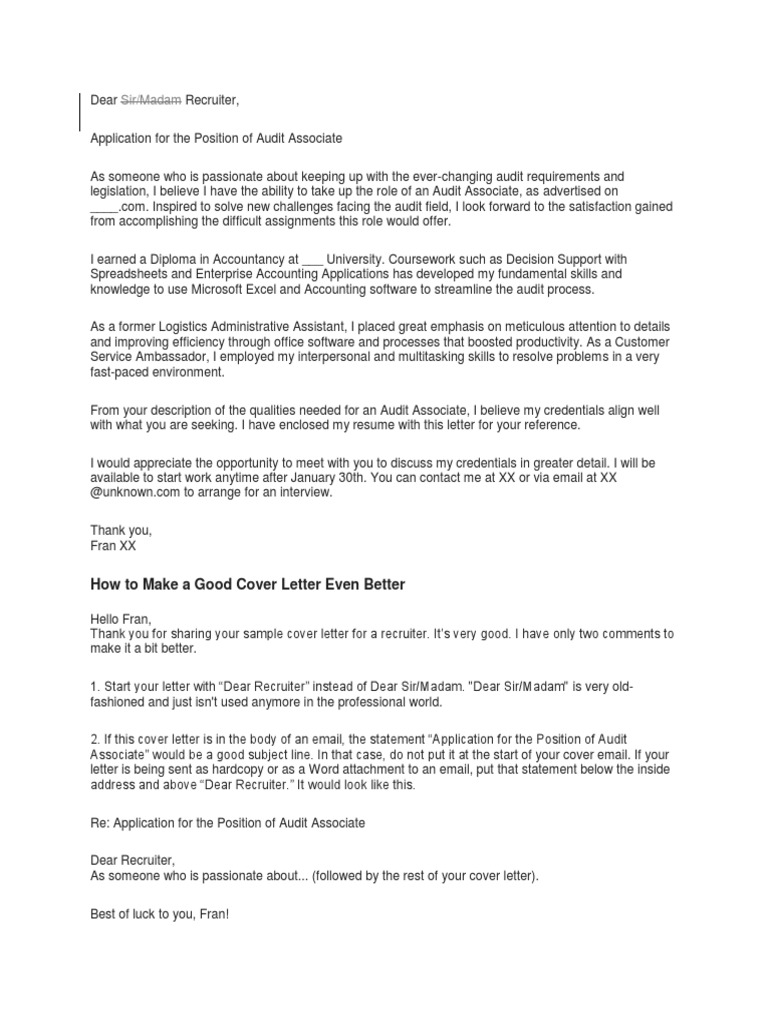 Cover Letter Sample For Auditor Position. Skip to primary sidebar. 123 Main Street Stateland ST 99999. Customize your cover letter based on if youre applying for a promotion switching departments or moving to a new role within the same team.