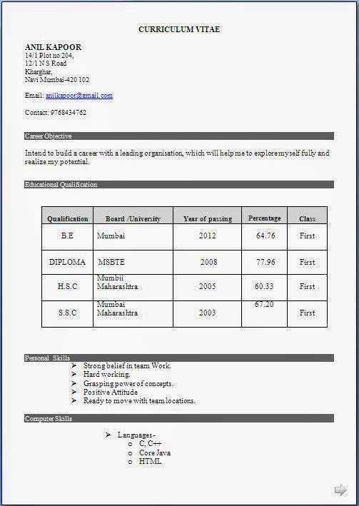 Diploma Resume Format Pdf