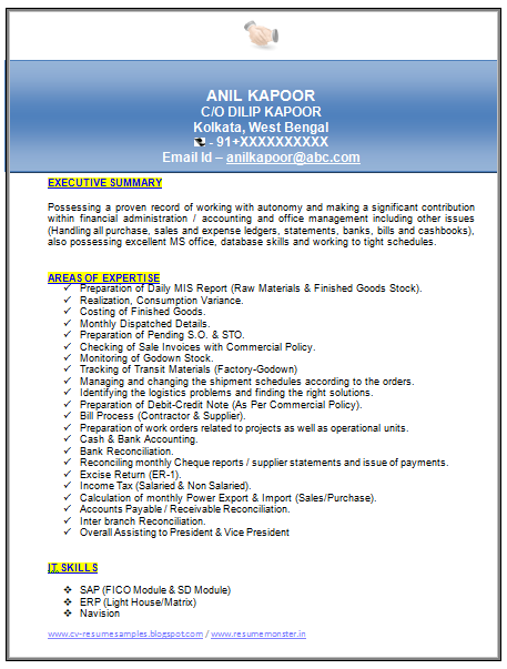 Finance Resume Format Experienced