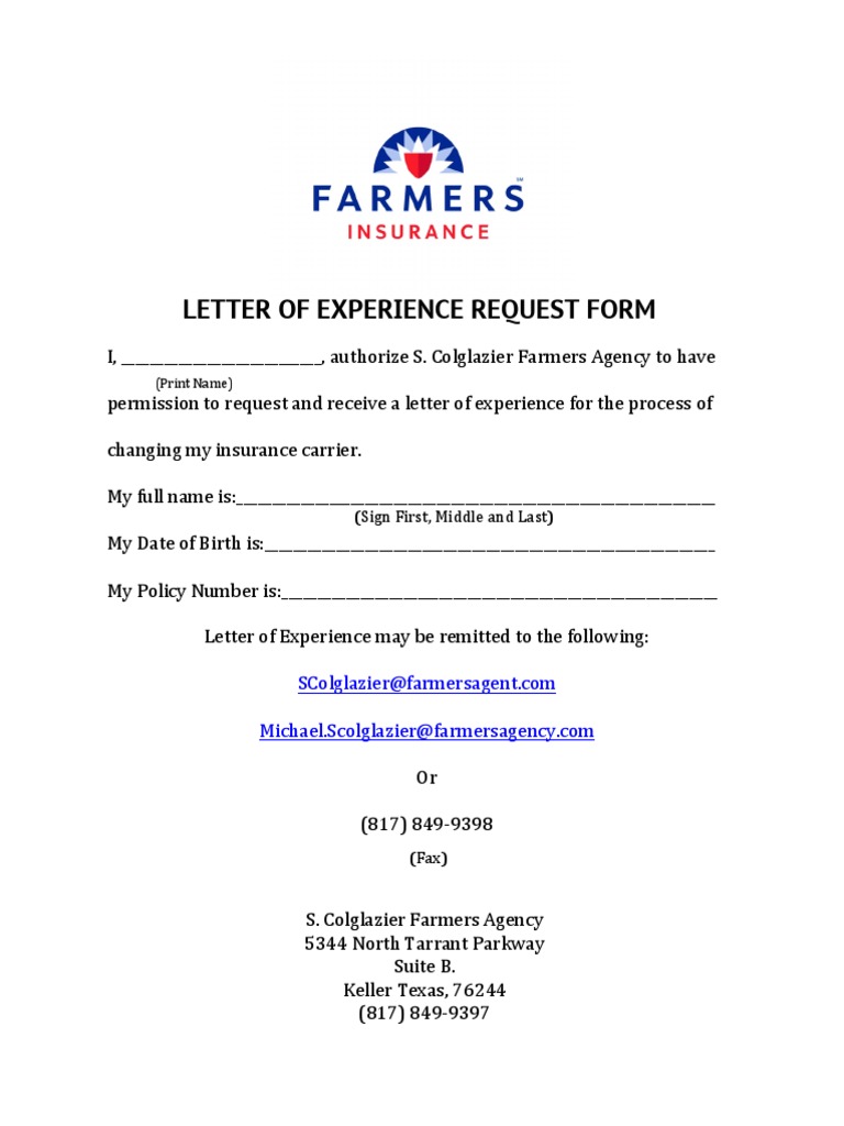 Letter Of Experience Insurance