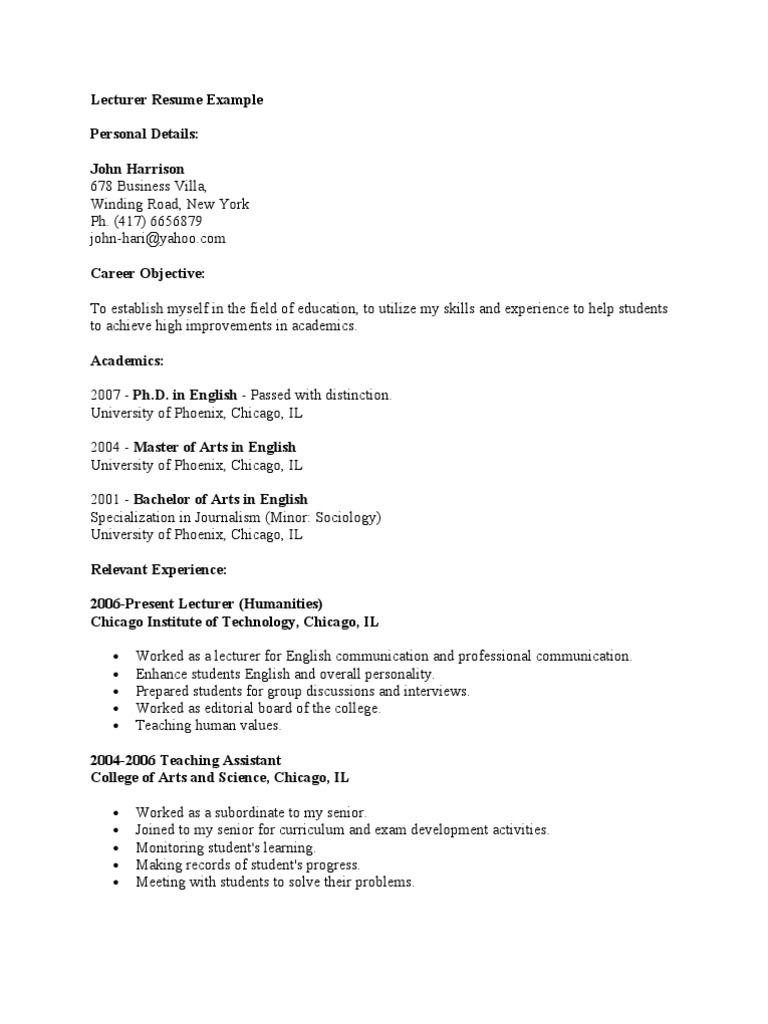 Resume Format For Lecturer Pdf. Best college lecturer resume samples and examples - you can download easily - Career Objective- Seeking a postion for lecturer where i can give practical knowledge with the theoratical concept. And a teachers resume is more than a piece of paper. Make sure your resume and cover letter are prepared with the same font type and size.