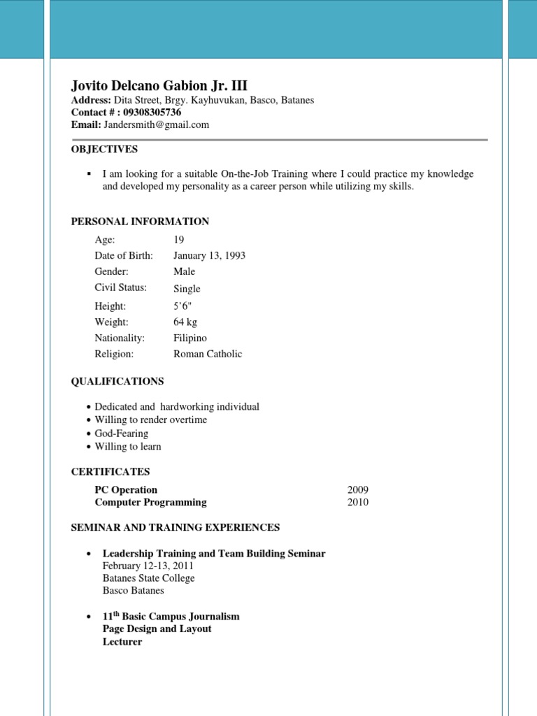 We have 12 images about resume sample for ojt pdf including images pictures photos wallpapers and more. Each resume example is kept up-to-date by our team of career experts and its page is reviewed to ensure the content remains relevant. Avoid placing fluff in the resume including irrelevant hobbies or other unnecessary information.