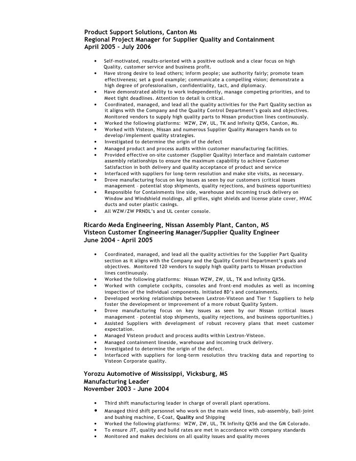 Quality Engineer Resume Format. Representative Supplier Quality Engineer resume experience can include. And communicating between suppliers and senior management and sending the defective products to suppliers.